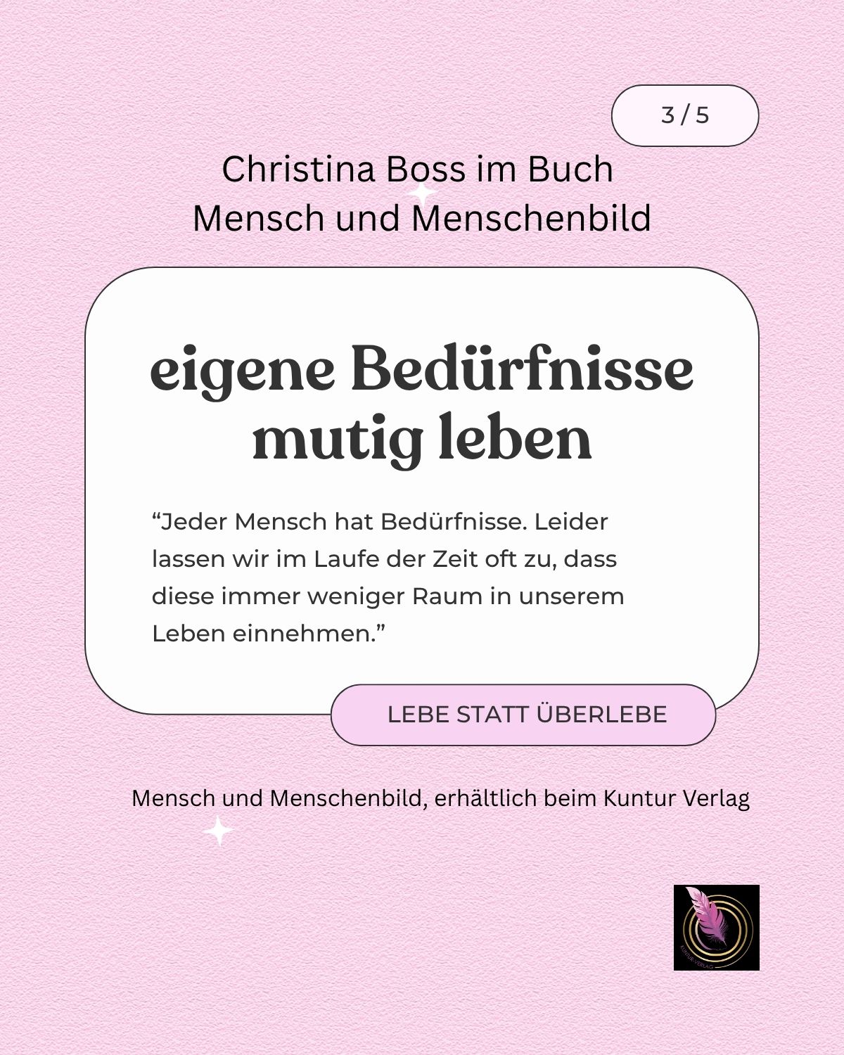 Ich wünsche mir, dass die Menschen den Mut finden, für sich und ihre Bedürfnisse einzustehen, unabhängig, ob dies anderen gefällt oder nicht. Ohne Angst dafür be- oder verurteilt zu werden. Entscheide über Situationen in deinem Leben, korrigiere, wenn nötig. Nichts tun, ist keine Option. Wenn du nicht entscheidest, wird die Situation dich in eine Entscheidung zwingen und dann hast du vielleicht keine Strategie zur Hand. Hab Mut, ein selbstbestimmtes und zufriedenes Leben für dich einzufordern und stetig danach zu streben. Zufriedenheit ist kein Ereignis, sondern ein Lebensweg. Sei loyal deiner Persönlichkeit gegenüber – das wird dich nachhaltig stärken.